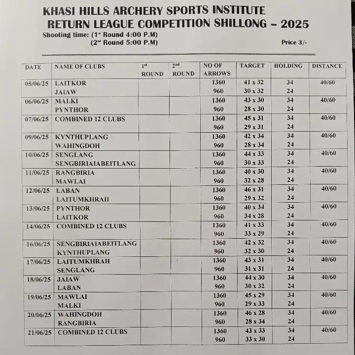 The Shillong Teer game is conducted in two rounds daily, Monday to Saturday. The winning number is determined by the last two digits of the total number of arrows that hit the target in each round. For example, if 1,535 arrows hit the target in the first round, the winning number is 35. Our chart displays these results in a clear and easy-to-read format.